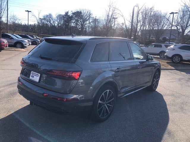 Certified. Q7 55 Premium Plus quattro, 4D Sport Utility, 3.0L TFSI, 8-Speed Automatic with Tiptronic, quattro, Samurai Gray Metallic, Black w/Leather Seating Surfaces, 10 Speakers, 3rd row seats: bench, ABS brakes, Adaptive Cruise Assist w/Lane Guidance, Air Conditioning, Audi Phone Box w/Wireless Charging, Auto High-beam Headlights, Auto-dimming door mirrors, Auto-dimming Rear-View mirror, Automatic temperature control, Bang & Olufsen Premium Sound System w/3D Sound, Bluetooth®, Brake assist, Bumpers: body-color, Call for a free Carfax report, Compass, Convenience Package, Delay-off headlights, Don't let the miles fool you, Don't miss out on this deal, Driver door bin, Driver vanity mirror, Dual front impact airbags, Dual front side impact airbags, Electronic Stability Control, Emergency communication system: Audi connect CARE, Extended Warranty Available, Exterior Parking Camera Rear, Four wheel independent suspension, Front anti-roll bar, Front Bucket Seats, Front Center Armrest, Front dual zone A/C, Front fog lights, Front reading lights, Fully automatic headlights, Genuine wood door panel insert, Heated door mirrors, Heated Front Bucket Seats, Heated front seats, Heated Steering Wheel, Hurry in today, Illuminated Door Sills, Illuminated entry, Iphone / Droid Compatible, Leather, Leather Seating Surfaces, Low tire pressure warning, Memory seat, Multi-Function Steering Wheel, Navigation system: Audi MMI Navigation plus with Touch Response, Occupant sensing airbag, Outside temperature display, Overhead airbag, Overhead console, Panic alarm, Passenger vanity mirror, Passes NC state inspection, Power door mirrors, Power driver seat, Power Liftgate, Power moonroof: Panoramic, Power passenger seat, Power steering, Power windows, Premium Plus Package, Radio data system, Radio: Audi Sound System, Rain sensing wipers, Rear air conditioning, Rear anti-roll bar, Rear fog lights, Rear reading lights, Rear seat center armrest, Rear side impact airbag, Rear window defroster, Rear window wiper, Rearview Camera, Recent Asheville Ford trade, Reclining 3rd row seat, Remote keyless entry, Roof rack: rails only, Security system, Speed control, Speed-sensing steering, Split folding rear seat, Steering wheel memory, Steering wheel mounted audio controls, Sunroof / Moonroof, Tachometer, Telescoping steering wheel, Tilt steering wheel, Topview Camera System, Traction control, Variably intermittent wipers, Wheels: 20 5-Spoke Turbine-Design.
